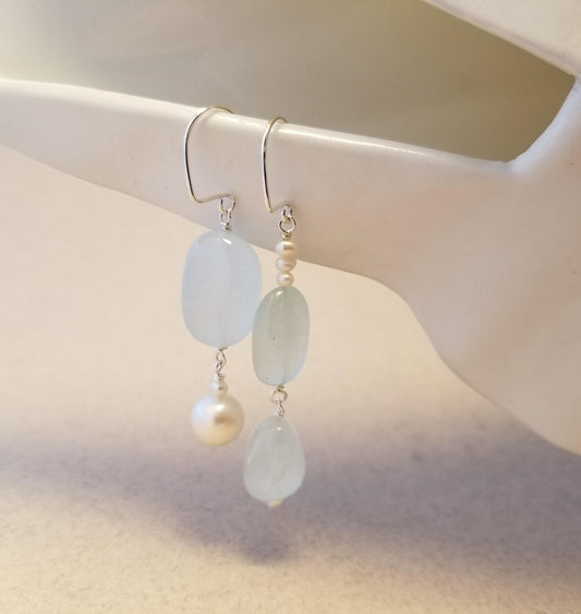 Asymmetrical Aquamarine & Freshwater Pearl Earrings No. 1