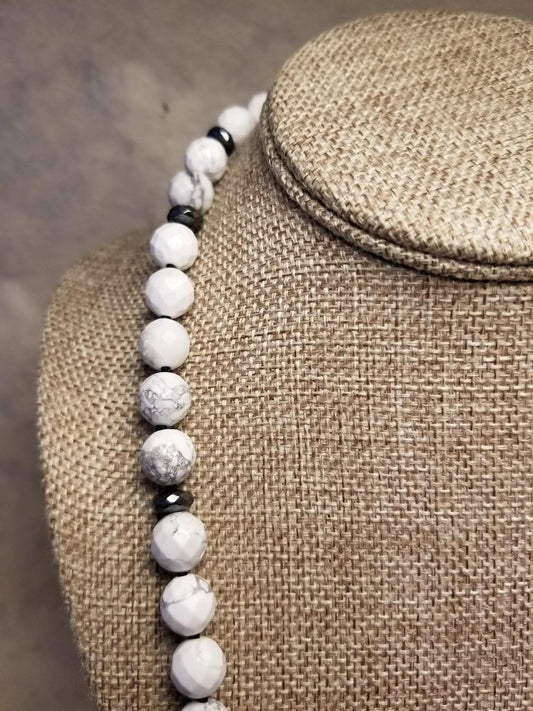 White Howlite and Hematite Necklace